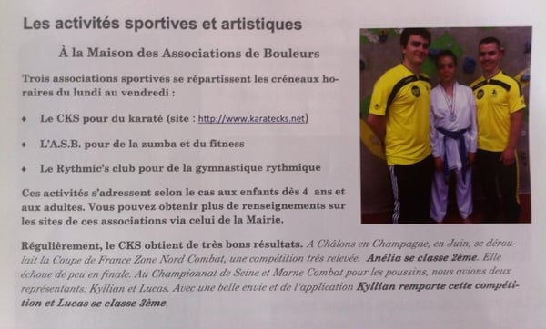 La municipalité de Bouleurs comme souvent met à l'honneur notre club pour les résultats sportifs, les manifestations du club. Cet article apparaît dans le bulletin municipal du mois de septembre 2015 de la commune. Une belle promotion pour notre association.